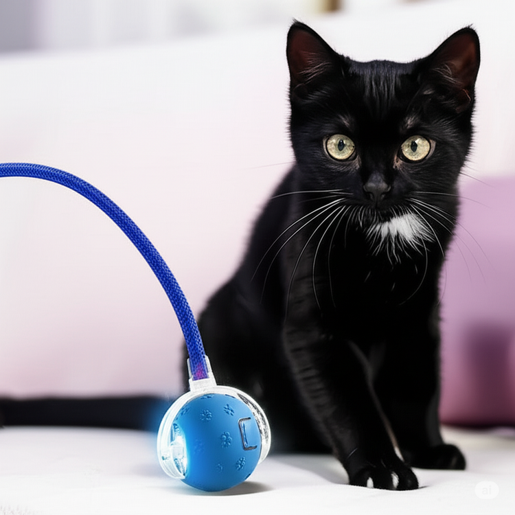 It’s powered by a smart motion sensor and motor inside. Once activated, it rolls and changes direction automatically to keep your pet engaged.